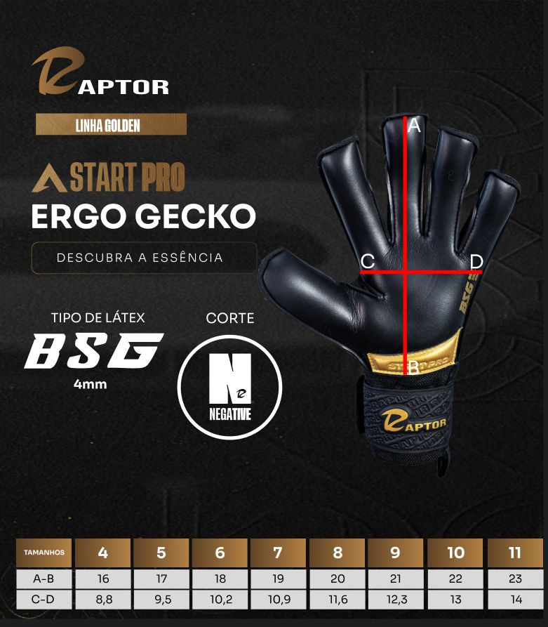 Eleve seu jogo com a nova START PRO Gold Edition! Seu corte Gecko oferece um encaixe justo e maior controle. O coração da luva é a palma em 4mm de Látex Alemão BSG, sinônimo de excelência em aderência. Com a essencial zona de abrasão, você ganha mais resistência. Vista a cor do ouro e domine o gol!